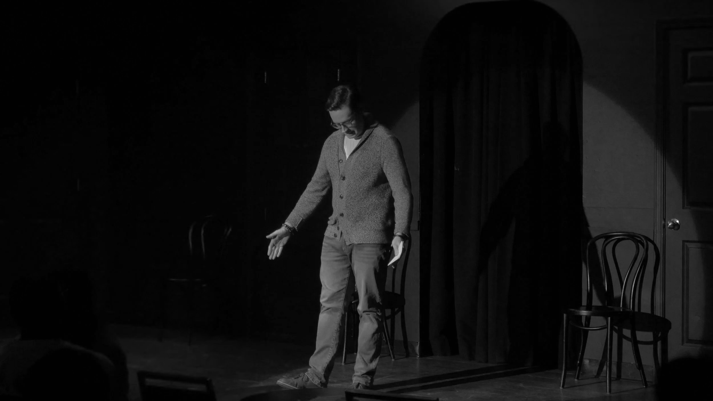 "At the performance I attended, actor Cory Hardin…killed it in a series of scenes in which he and Thornton organically found their way to stories that ranged from dramatic realism to comic absurdity."